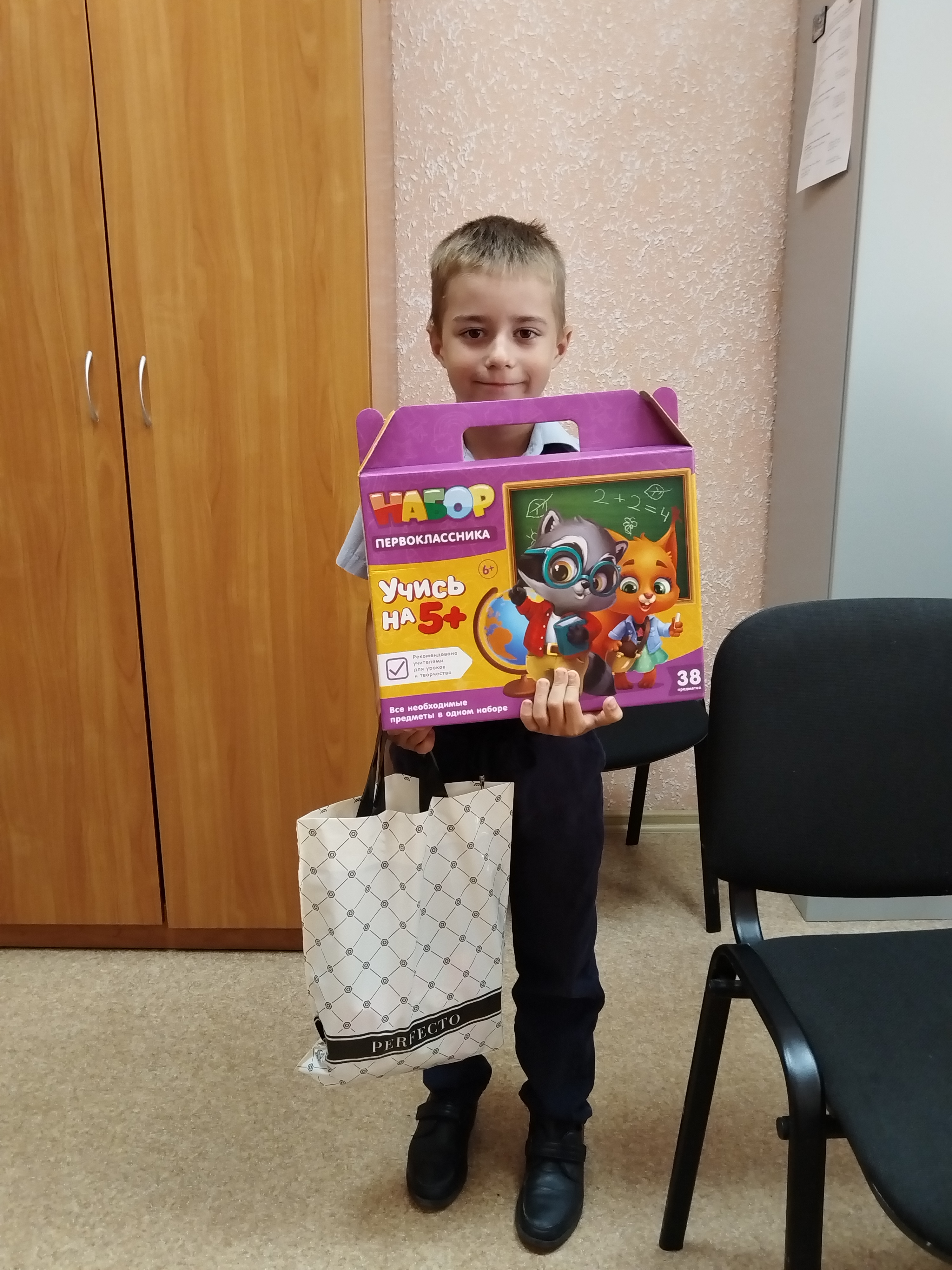 Помощник председателя суда Надежда Васильевна Гладышева от имени коллектива суда поздравила первоклашек Крикунова Сашу и Салтыкову Ангелину с началом учебного года, пожелала успехов в учебе, усидчивости за партой и внимания на уроках, хороших отметок, веселого настроения и звонкого смеха на переменах, вручила ребятам подарки, в состав которых входило все необходимое для успешного обучения, полета фантазии и творчества, а так же сладости к празднику Дня знаний. Дети с сердечной благодарностью приняли поздравления и подарки, в ответ выразили надежду на новые встречи.